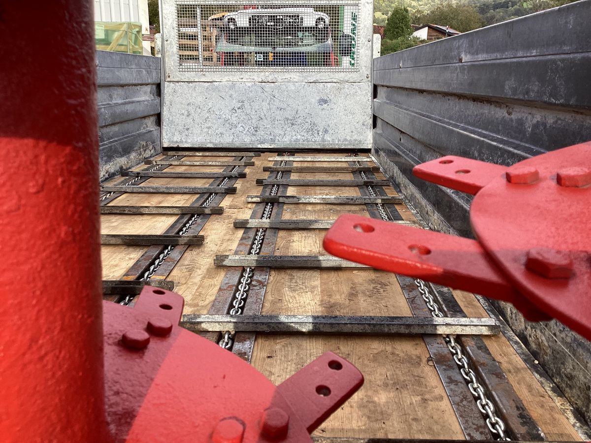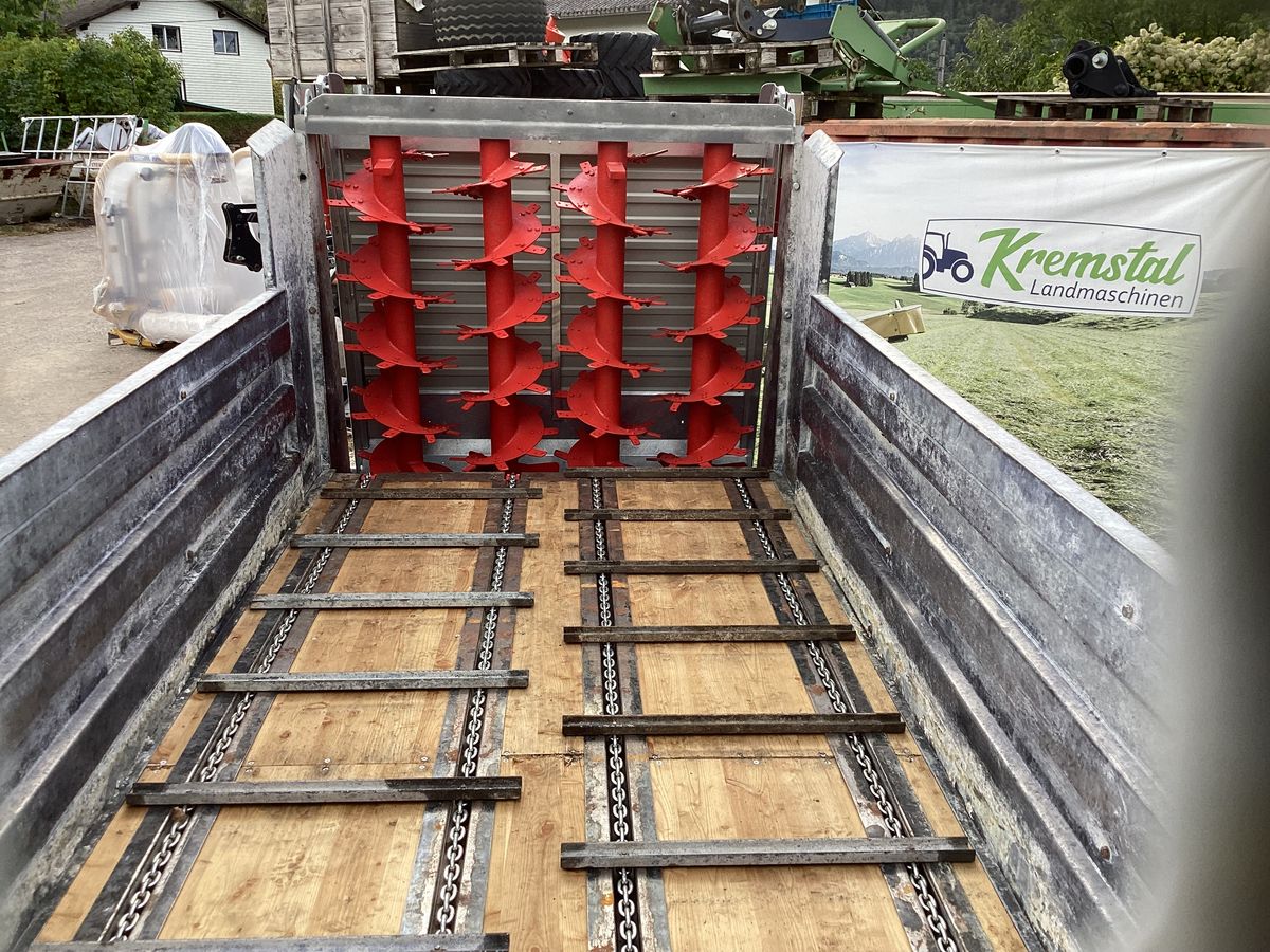 Zum Ausstreuen von Stallmist aller Art.Streubreite ca. 6m mit Feinstreuwerk ST 20 ( 4 stehende Walzen ) aushängbar mit geschraubten, versträkten Fräsklingen ( wendbar ), Kardan-Direktantrieb ohne Kette, Freilauf, hydraulischer Kratzbodenantrieb stufenlos regelbar, 4 Kratzbodenketten G80 10x31, automatische Kettenspanner, Stahlprofibordwände 80 cm, Streuwerkdurchgang 130cm, Hydraulische Bremse serienmäßig, Holzboden Lärche 32mm, Weitwinkel-Gelenkwelle mit Scherbolzen, Beleuchtung, Zenralschmierung, Aufstiegleiter, Achsbockblech, Obenanhängung, Flanschzugöse 40mm,Bereifung 500/50-17sofort Verfügbar, Besichtung nach Absprache möglich,