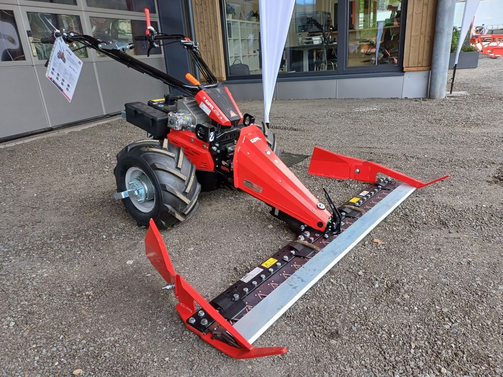 > Inklusive Zubehör: Betriebsstundenzähler, Geräte-Schnellwechselflansch, Werkzeugbox, Breitreifen 18 x 9.50 x 8 AS, Spurverbreiterung 16 cm kpl. 32 cm, Zusatzstachelwalzenräder 2-reihig 4.00 x 10, K-LOM Schwinghebel-Antrieb, KMA-SB Mittelschnitt-Fingerbalken 163 cm