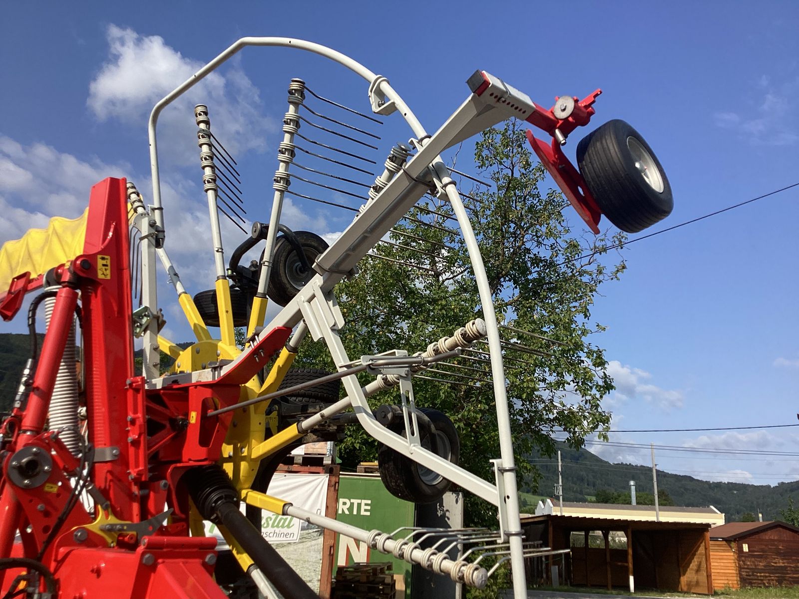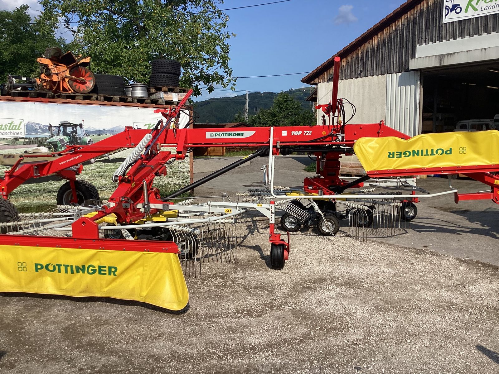 Pöttinger Top 722 Multitast Seitenschwader mit Twin Funktion, Tandemfahrwerk am Schwadkreisel, Tastrad in Kreisel und vorgesetztes Tastras aussen, Elektische Bedienung, Bereifung 380/55-17 Vrendestein Flotion Zinkenarme abnehmbar, Höheeinstellung über Kurbel, Zwangslenkung hinten Schwader läuft in der Traktorspur nach, Beleuchtung, ein Doppelschwad oder zwei Einzel Schwader möglich. Schwader sofort verfügbar, Technisch und Optisch im sehr guten Zustand, Auskunft Herr Gundendorfer