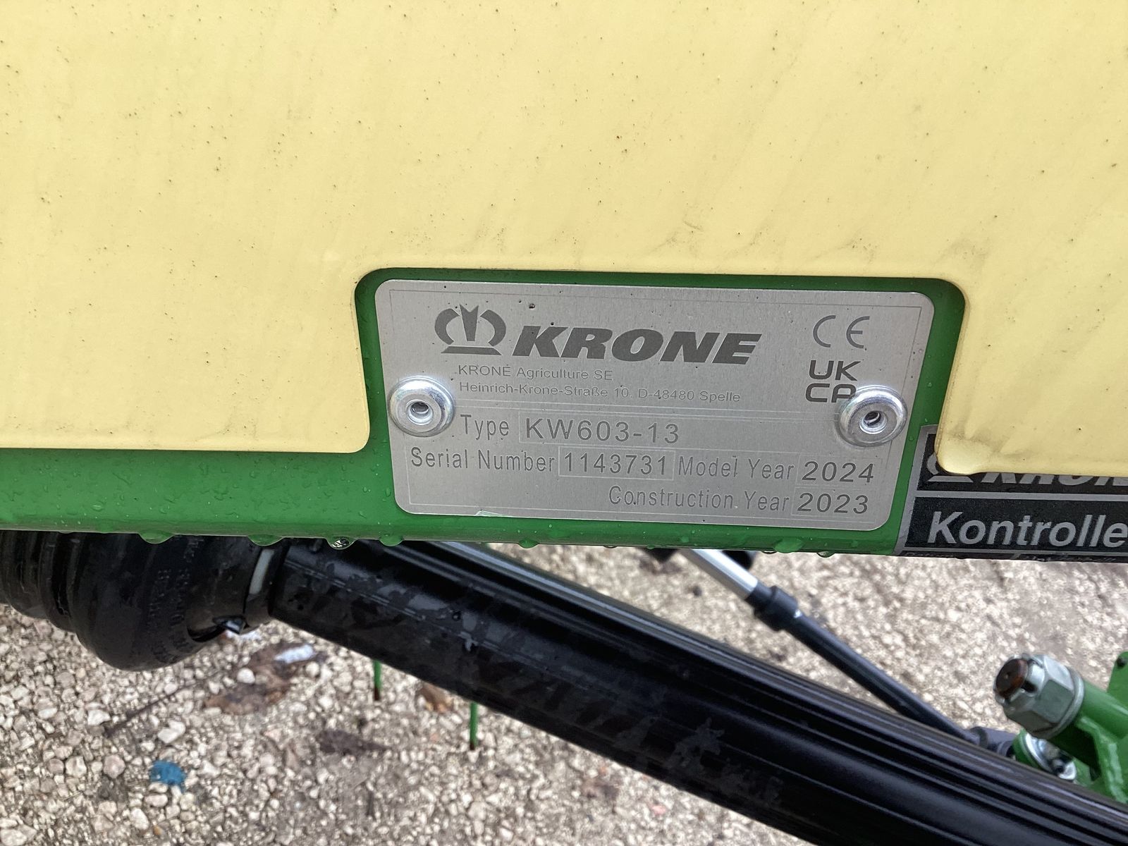 Krone Vendro 620 Highland Vorführkreiselheuer mit Klappbaren Tastrad vorne, Hydraulischer Grenzstreueinrichtung, Beleuchtung, Gelenkwelle, Hydraulische Dampferstreben, Anbau mit Dreipunktanbaubock mit Serienmäßiger Umsteck möglichkeit den Kreisel nahe am Traktor anzubauen.