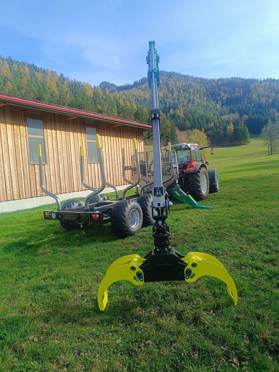 Neumaschine Palms Forstanhänger H10D mit GL 6.87 mit 8,70 Reichweite 4-RAD DL 25 kmh. Rahmenauszug. LED Scheinwerfer am Kran. Prehdraulik Walvoil. Flap Down Abstützung. Kurbelstützfuß. Bereifung 500/50-17, 8 Stk Rungenverlängerung. CoC Papiere. Greifer 147 cm. Vorbereitung für Kranseilwinde. 130 lt Pumpenleistung . Inklusive Gelenkwelle