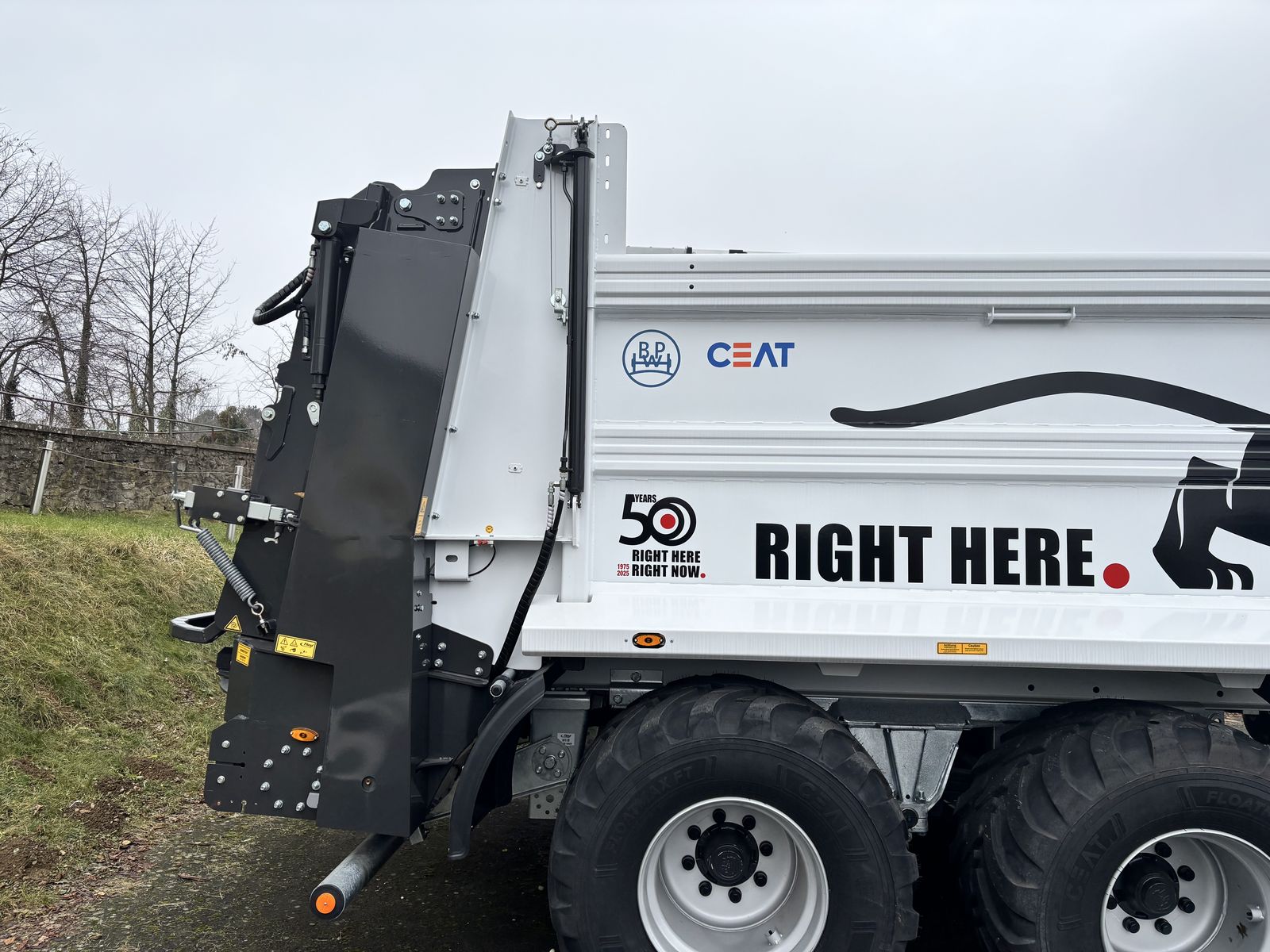 Breitstreuaggregat: muck control für Streubreiten von bis zu 26 Meter 2150 mm Durchgangsbreite, 2 liegende Fräswalzen Ø 560 mm inkl. Stauschieber mit innenliegender Führung für beste Abdichtung und hydraulischer Heckklappe mit mechanisch einstellbarem Fallwinkel, 2-Teller- Breitstreuwerk varioSPLASH Ø 1100 mit je 6 Wurfflügeln mit Platten aus HB 400 und mechanisch einstellbarem Streuwinkel (2 Steuergeräte doppelwirkend erforderlich)