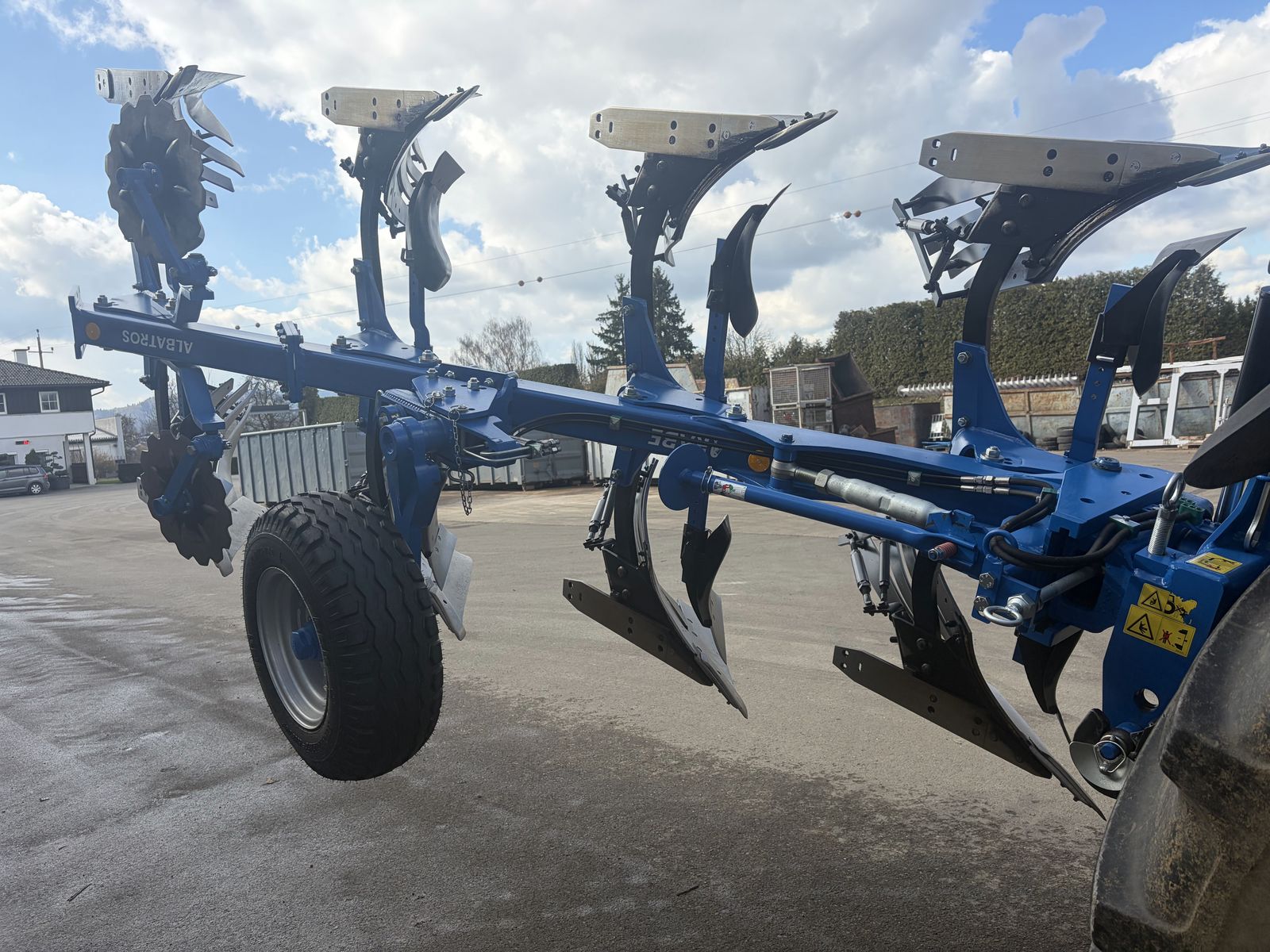 Das Gesamtgewicht des Pfluges, inklusive aller Ausstattungsmerkmale, beträgt circa 1425 kg. Dieses Modell von Rabe ist ideal für Landwirte, die Wert auf Zuverlässigkeit und Effizienz legen und modernste Technik in ihrer landwirtschaftlichen Ausrüstung schätzen.